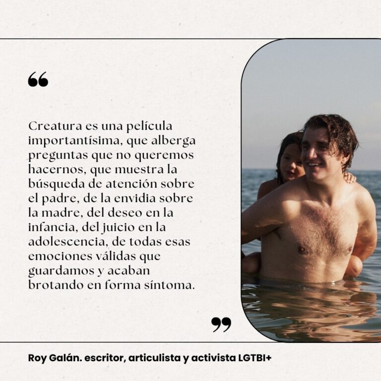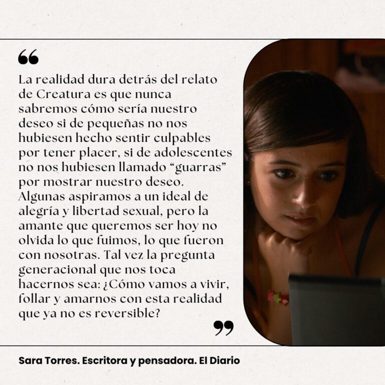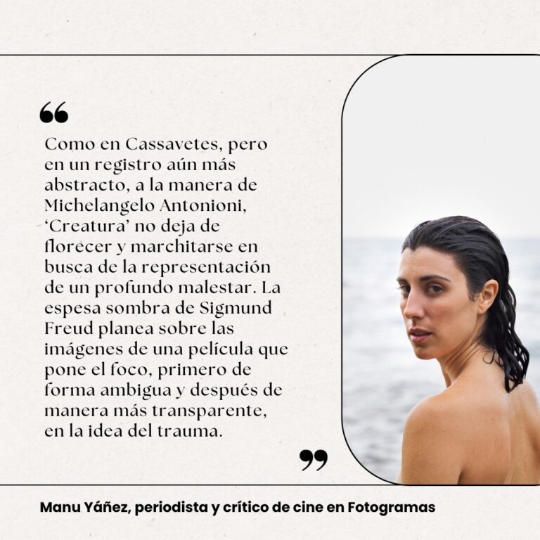 Diseño y concepto de carrusel en Instagram para Avalon Cine, destacando la repercusión mediática de la película *Creatura*. La pieza recopila extractos de críticas y reflexiones publicadas en prensa y redes sociales, subrayando los temas centrales del film: deseo y sexualidad femenina.